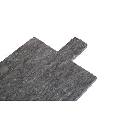This large paddle board brings elegance and practicality to the tabletop while serving food. Made from sturdy black marble, this versatile board boasts a rectangular shape with a wide handle for a firm grip.