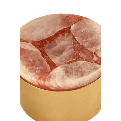 The base of this exquisite trinket box is crafted from smooth metal and has a reflective gold finish. Its lid is made from solid quartz, and has a pink finish complete with the lustrous qualities that this organic material is renowned for. It makes a stylish accent piece in a luxe-style interior setting.