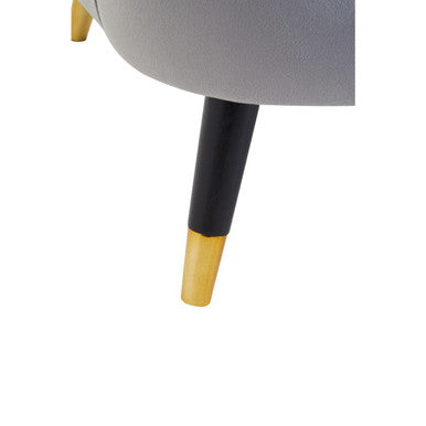Create a truly classic aesthetic with the Loretta chair, upholstered in sleek grey velvet it features a scalloped design and sturdy black wood legs with luxe gold tips.
