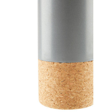 The 450ml bottle is made from durable stainless steel and has a double wall design. It has a tough PP lid with integrated drinking spout, and the cork base adds an organic finish to the cool grey colour.
