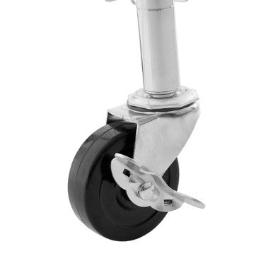It features two wireframe storage shelves and has a curved handle and caster wheels on its feet that make it easy to move. Its top tier is made from eco-friendly bamboo with an indented outer section to catch crumbs and other food debris.